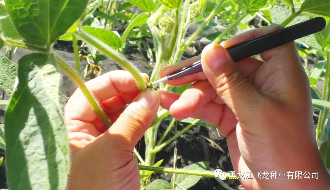 大豆雜交成活率是影響育種效率的重要因素之一。大豆為嚴(yán)格的閉花授粉作物,花器小、發(fā)育快、分布零散,受精過程對環(huán)境有較高要求。飛龍種業(yè)大豆科研育種雜交圃,嚴(yán)格按照飛龍種業(yè)首席專家杜維廣研究員的規(guī)劃,父母本相鄰,父本條播,母本穴播,規(guī)范種植。